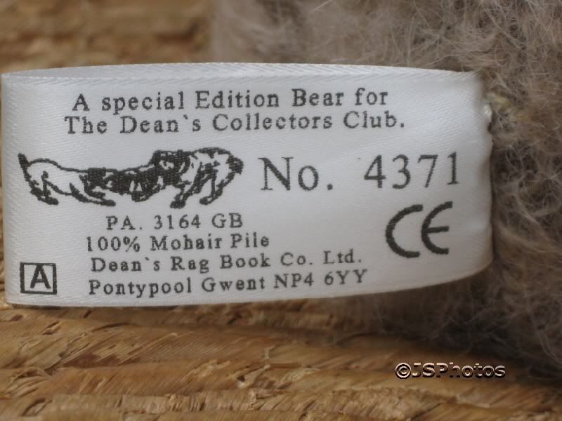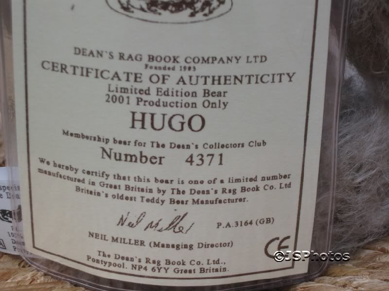 Dean's Rag Book UK Hugo Limited Edition 2001 Membership Teddy Bear 100% Mohair